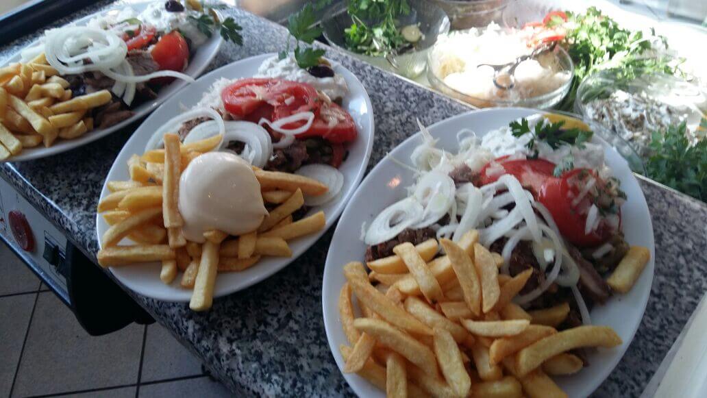 Tomaten, Käse, Oliven, Gyros, Zwiebeln, Oliven, Peperoni
